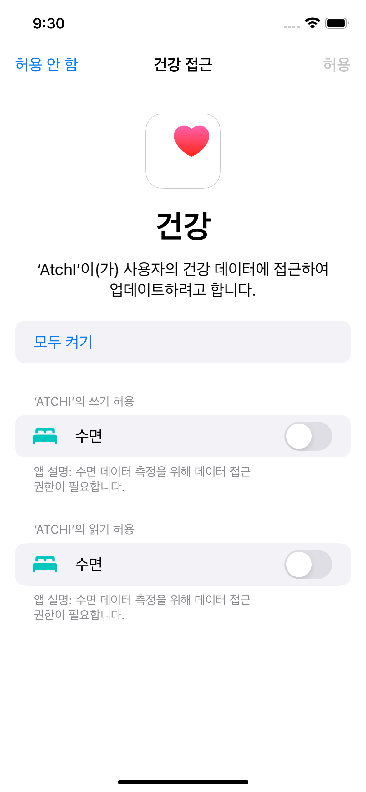 // 수면 데이터에 대한 권한이 허용되어 있는지 확인