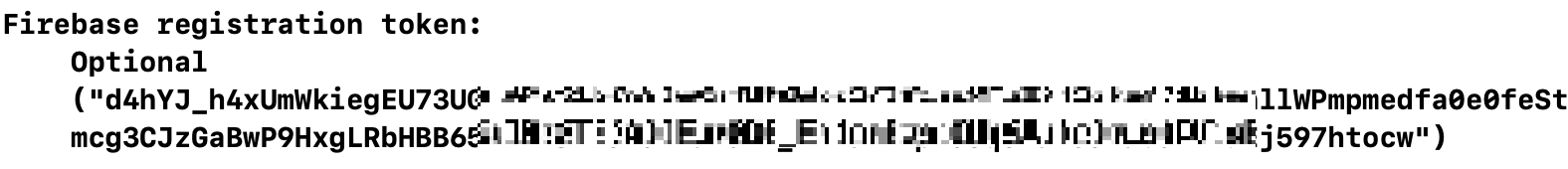 작업을 마친 앱을 빌드해보면 아래와 같이 토큰이 출력되는데 이를 잘 복사해놓습니다.