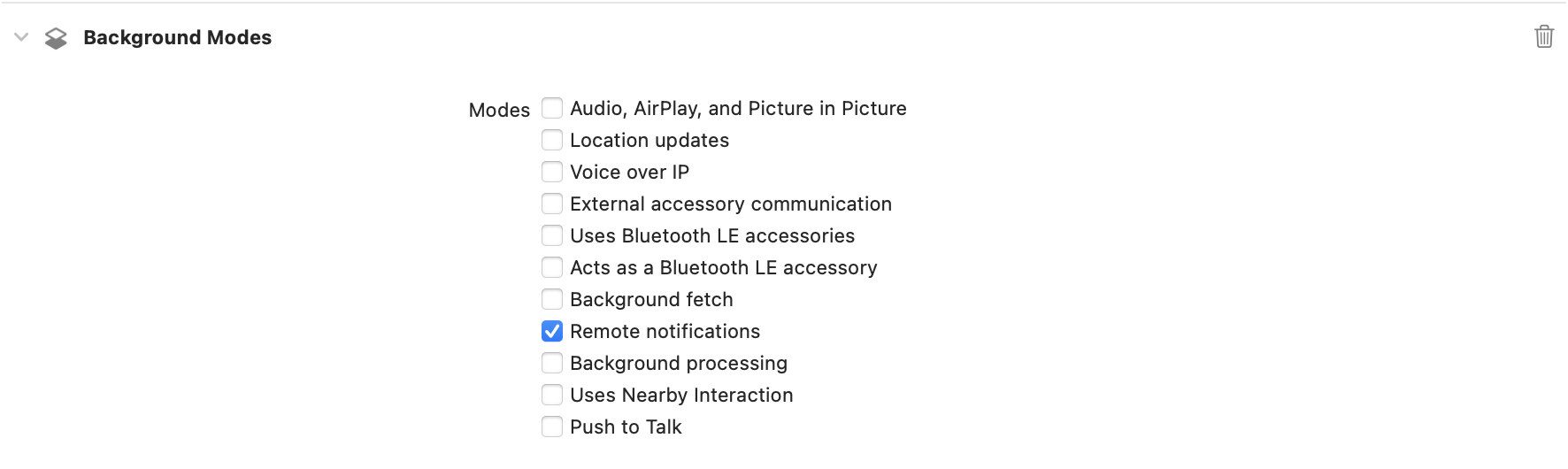 3. Background Modes에서 Remote notifications를 체크해줍니다.