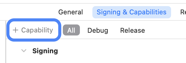 1. Xcode project 부분에서 +Capability를 클릭합니다.