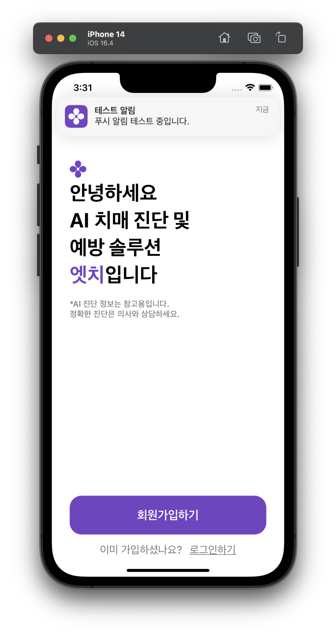 앱 활성화 중에도 알림을 받을 수 있도록 설정해 두어서 앱 실행중에도 알림을 확인할 수 있습니다.