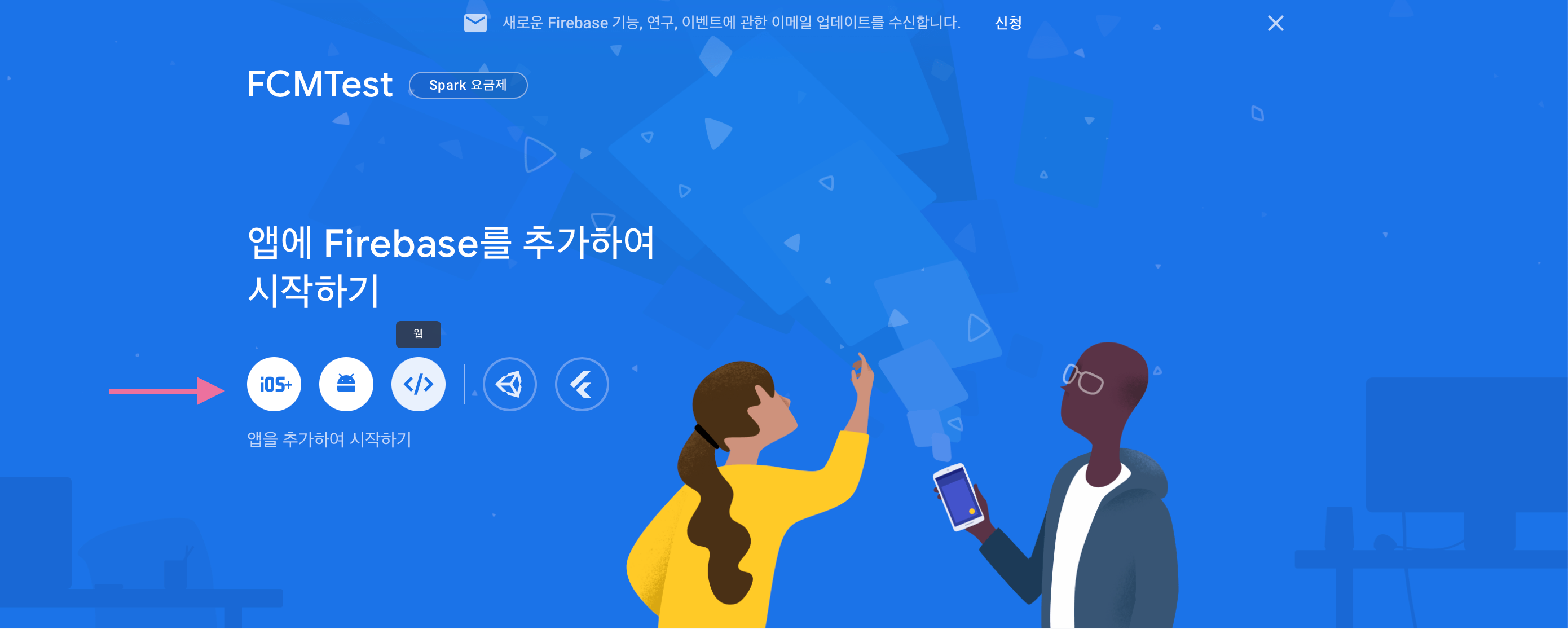 1. 기존에 파이어베이스 솔루션을 쓰고 있었다면 해당 프로젝트에서, 아니라면 새 프로젝트를 생성합니다.