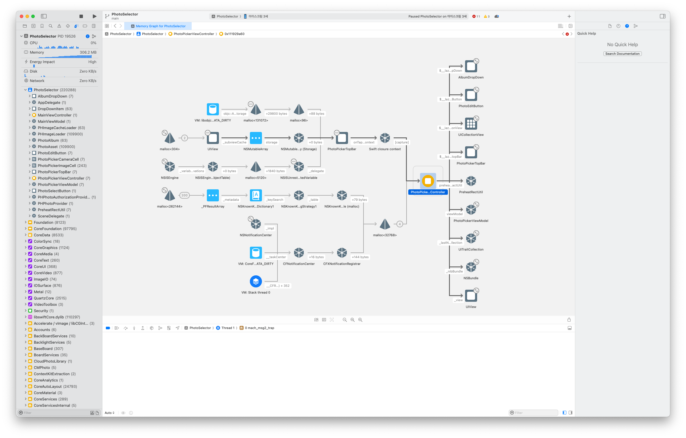 위에서 보시면 PhotoPickerViewController가 [capture]된 것을 확인할 수 있습니다.