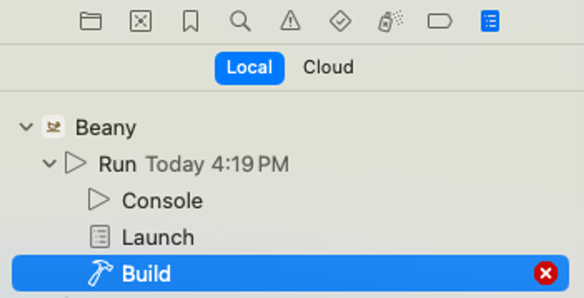 자세한 에러를 보기 위해선 Report Navigator에서 실제 빌드가 실패한 지점을 확인하면 됩니다.